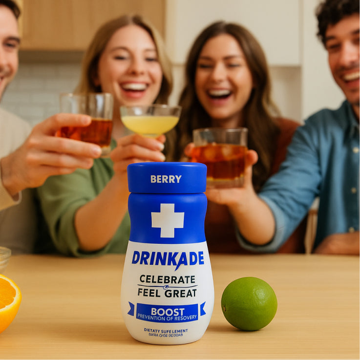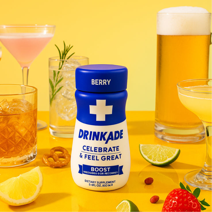 DRINKADE Boost's proprietary formula is a blend of vitamins, amino acids, nutrients, minerals and antioxidants, and 189 mg of natural caffeine (the same as two cups of coffee!). It neutralizes the toxins in the liver to minimize the aftereffects of alcohol consumption.The tiny bottle easily fits into your pocket, so that you can keep it handy when you're on the go. Boost is available in a pack of six bottles and comes in berry flavor.*